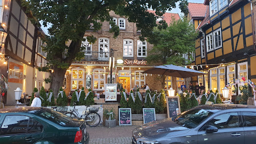 Read moreWir waren heute mit 5 Personen zum Frühstück im San Marino und ich war stark enttäuscht von der Küchenleistung sowie auch vom Service. Der Servucekraft die uns bedient hat, habe nach dem ersten Service gesehen, dass das keine gelernte Kraft war. Sie wusste nicht von welcher Seite eingesetzt wird, konnte sich keine Extra Bestellung merken, hat die Teller und Getränke den falschen Gästen zu geordnet. Nachbestellte Brötchen waren in der Mitte noch gefroren. Ich habe sie mit dem Hinweis zurück gegeben, was sie wohl nicht verstanden, denn sie kam nicht mit anderen Brötchen zurück. Als ich mich bei Ihr nachgefragt habe, wo meine Brötchen sind, bekam ich die Frage, warum haben Sie Brötchen zurück gegeben. So eine Servicekraft kann höchstens Zuarbeiten erledigen, aber nicht alleine eigentlich bedienen. Es wurde auch nicht nachgefragt ob es noch Wünsche gäbe, wir hätten gerne noch was getrunken, aber bei dem Service ist uns die Lust vergangen. Ausserdem war das Frühstücksangebot bzw. was uns hingestellt wurde, sehr schlecht, zum Lachs gab es einfach nur körnigen Senf, das Rührei war nur in der Pfanne zusammen gerührte Eier ohne das sie vorher in einer Schüssel verquirlt wurden. Außerdem waren die Eier zu sehr gebräunt, was nicht gerade von einer fachlichen Kompetenz zeugt. Mich sieht das Restaurant jedenfalls nicht wieder, man sollte vielleicht einmal die Anrichteweise überdenken, diese stammen noch aus den siebziger Jahren. Ich habe viele Fotos von Gästen gesehen die mich in meiner Meinung...
