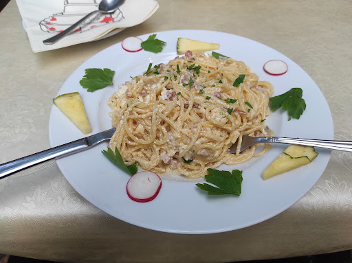 Wir waren als sehr große Gruppe mittags essen und wurden zufriedenstellend bedient. Das Essen kam sehr schnell, war aber qualitativ sehr unterschiedlich. Grundsätzlich kann man die (nicht online verfügbaren) Extra-Karten für hausgemachte Nudeln empfehlen, während die Hauptkarte eher stiefmütterlich behandelt wird. Zum Essen gab es umsonst (wahrscheinlich selbstgemachtes) leckeres Brot und am Ende wird kostenlos ein kleiner Erdbeer-Smoothie gereicht.Das Bruschetta war im Grunde ebenfalls nur dieses Brot mit Tomaten drauf und daher eher überflüssig. Die Präsentation der Gerichte war interessant und einige Gerichte etwas sehr salzig (z. B. die Gnocchi und Tortelloni in Sahnesauce). Ob die Gnocchi tatsächlich selbstgemacht waren, konnte meine Kollegin leider nicht feststellen. Die schwarzen Tortelloni mit Steinpilzen und Scampi sowie die Fagottini mit Gorgonzola waren hingegen aus einer Manufaktur und schmeckten sehr, sehr lecker. Gerne hätten es aber noch mehr Tortelloni sein können. Nicht zu empfehlen sind die Pizzen (relativ hart) und die Lasagne, da sie sehr flüssig, geschmacksneutral und nicht wirklich eine Lasagne war. Grundsätzlich würde ich aber gerne nochmal wieder kommen um mich durch den Rest der hausgemachten Nudeln zu probieren.