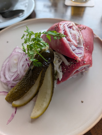 Sådan dækker du ikke et bord. Jeg fik to ender af brød, og en af ternerne var så uhøflige, at du havde sådan en dårlig oplevelse, stedet er smukt med en hyggelig atmosfære foruden tærnen, der hoster en i nakken og synes, hun er gæsten i stedet for at give en oplevelse til gæsten. Det var synd for de andre tjenere, der er smilende og menneskelige, jeg var ved at bryde min tand på grund af det brød, jeg fik. Men alt var acceptabelt undtagen for den pige, der gjorde oplevelsen ked af at være der, hun tror, hun ikke er vant til at have fremmede i sit arbejde. Derfor får...