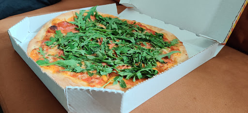Sehr große Pizzen, sehr schön! Die Pizza hatte einen knusprigen und dünneren Boden. Der Rand war lecker und ebenfalls knusprig. Der Belag war lecker, wirkte frisch und war schön viel! Gewürzt wurde sehr lecker. Käsemenge war gut.