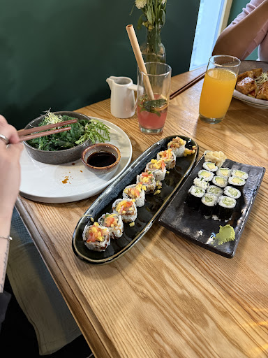 Die von uns probierten Vorspeisen waren sehr lecker, das Chicken Karaage mit dem Käsedip war mein persönliches Highlight. Zum Hauptgang hatten wir Sushi sowie Udon Nudeln mit Rindersteak und Tofu. Das Sushi war sehr lecker und von hervorragender Qualität. Die Udon Nudeln schmeckten ebenfalls sehr gut, waren jedoch etwas fad. Mango-Kokos Pana cotta und Matcha-Tiramisu zum Nachtisch rundeten das ganze ab.