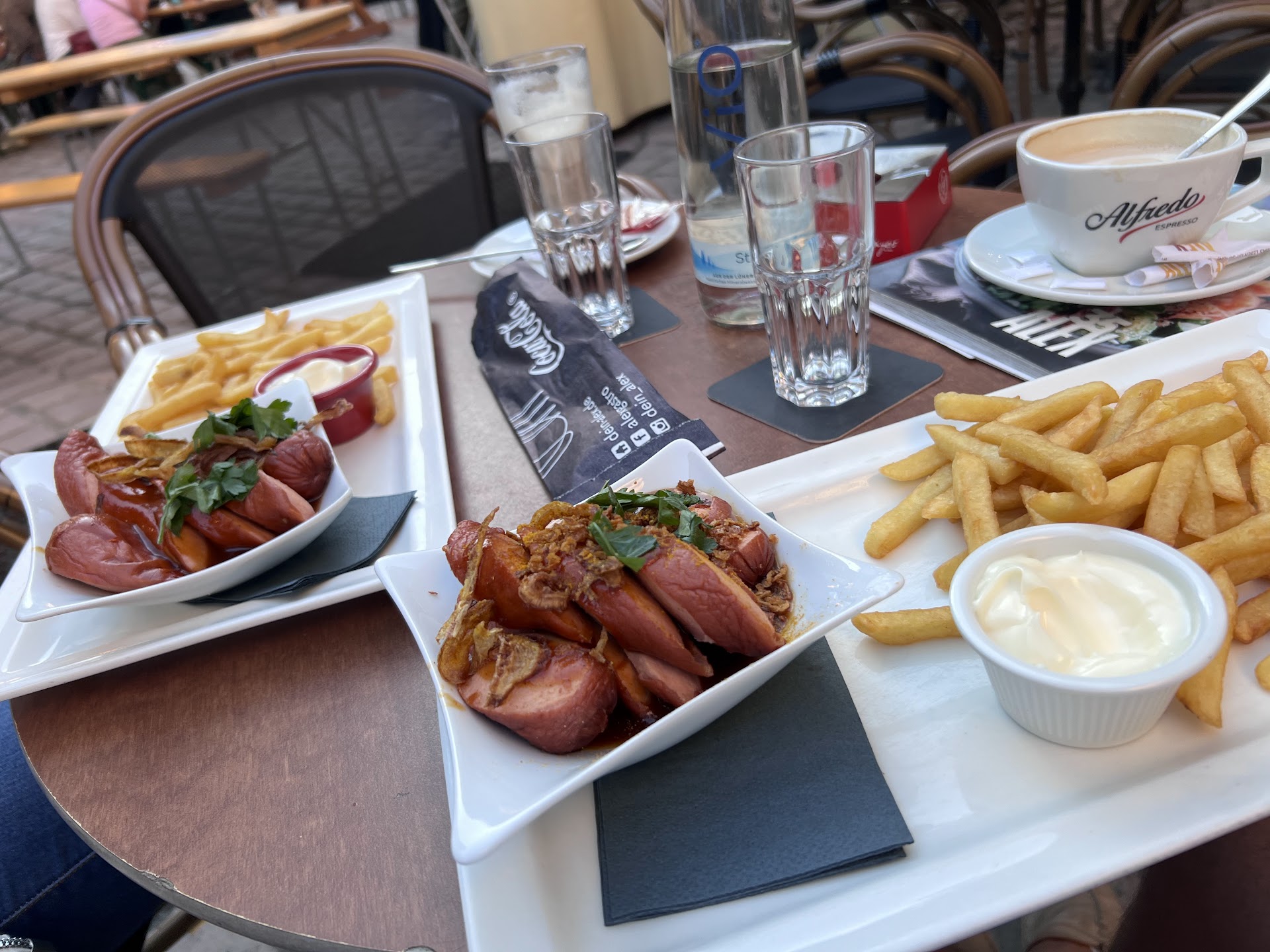 For the type of restaurant this is everything was very good the waiter was very nice English is still a problem here and this I really don’t think they care since I don’t think that many Americans or English tours come here and I can understand why !!’ They’re supposed to have something big in 2025 I hope people start helping other people with English language if you want people from other countries to come!!feel like they haven’t come as close to the 2022 which I don’t understand but that had nothing to do with good The waiter did try I had to use a Google translator in water to understand the menu. had a super salad which I enjoyed very much the steak and baked potato was tasty the Apperal spritz was OK and the Chi latte was good we had the dessert that was just OK two scoops ice cream and a whole bunch of google on top outdoor indoor seating Moderately high pricing if I see this restaurant in another German city I will definitely try it there cause the...
