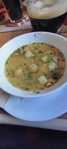 Das beste zu erst, der Gulasch war King👑 auch wenn leider etwas wenig Fleisch und viel Soße im Verhältnis zu den Knödel. (die Hauptsache, es schmeckt und man wird satt, beides stimmt, auch wenn ich im Verhältnis zu anderen viel esse) Die Knoblauchsuppe, die ich ebenfalls gegessen habe, hatte Schuss🔥, genau wie ich mir eine Knoblauchsuppe vorstelle. Ambiente könnte man überholen, aber darauf sollte man nicht das Hauptaugenmerk legen🧐🚫. Das Personal war sehr nett, es wurde auch eine Vase für die Blumen des Geburtstagskind gereicht.