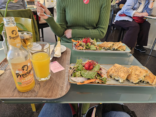 Trotz vollem Hause haben wir noch Sitzplätze gefunden und mussten auch nicht all zu lange anstehen. Die Spinat-Taschen waren lecker, nicht fettig und gut knusprig. Die Limonade war nicht zu süß. Preis-Leistung top! Das Teesortiment stammt übrigens aus Ländern mit Krisengebieten. Eine schöne Geste von den Betreibern! Auf Wunsch kann man sich auch kostenlos nochmal einen zweiten Aufguss holen.