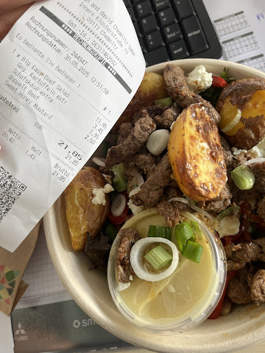 Unser Verdacht besteht dem übrigen eher darin, dass wir schlichtweg vergessen wurden, denn die Croûtons waren schon super weich und das Hähnchen auch nicht mehr warm. Ein Kassenzettel hing auch nicht am Beutel (vllt weil da eine Zeit drauf steht?) ...