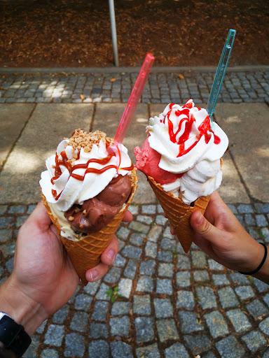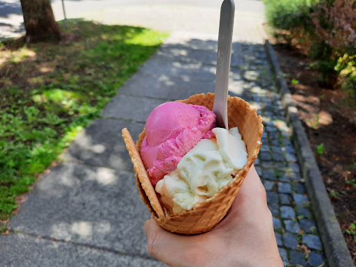 Sehr gute Anlaufstelle, wenn man Lust hat sich ein leckeres Eis zu zapfen. Die Auswahl an verschiedenen Sorten ist dabei nicht exorbitant groß, jedoch gibt es neben den klassischen Sorten auch immer mal wieder verschiedene und leckere neue Sorten, die teilweise auch mal etwas ausgefallener sein können. Eine Kugel Eis kostet momentan 1,10€, ist aber auch dementsprechend sehr voluminös und qualitativ hochwertig. An warmen Tagen sollte man etwas Zeit und Geduld mitbringen, denn dann kann es schonmal zu leichter Schlangenbildung vor der Eisdiele kommen. Die Mitarbeiter arbeiten jedoch alle sehr zügig und trotzdem super freundlich. Aufgrund der aktuellen Corona-Situation gibt es das Eis momentan nur im Becher...
