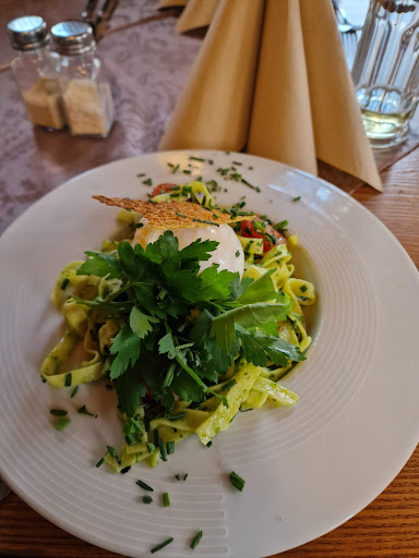 Read moreWeihnachten 2024, 1. Weihnachtsfeiertag, eigentlich einer von drei Tagen voll Ruhe und Besinnlichkeit. Wir hatten um 13:00 Uhr einen Tisch für 4 Personen bestellt. Erster Eindruck, Menschenmengen verlassen das Restaurant, wahrscheinlich der erste „Durchgang“ des Weihnachtsessens. Um uns wirbelte es, Tischdecken wurden gewechselt, Gläser, Besteck und Servietten ab- und aufgedeckt. Gereicht bekamen wir ein gefaltetes A4-Blatt (Speisekarte) mit den Worten: „Wir haben heute nur eine kleine Karte. Wir müssen das ja schließlich auch schaffen.“ Was? 😳 Die ersten Getränke erreichten uns nach 40 Minuten, die Vorspeisen (2 Suppen, 1 kleiner Vorspeisensalat), auf Nachfrage, nach 1 3/4 Stunden und anschließend, die Flasche Wein war inzwischen fast leer, auch die Hauptspeisen. Ja, es wurde sich entschuldigt, Nachtisch und Kaffee aufs Haus angeboten, aber den Gast interessiert weder, ob man mit Aushilfen arbeitet oder ob man an Weihnachten 2 Durchgänge finanziell nötig hat, noch serviert man einen Gast mit den Worten ab, „Das ist mir jetzt zu doof.“. Auch nicht als Frau des Inhabers.