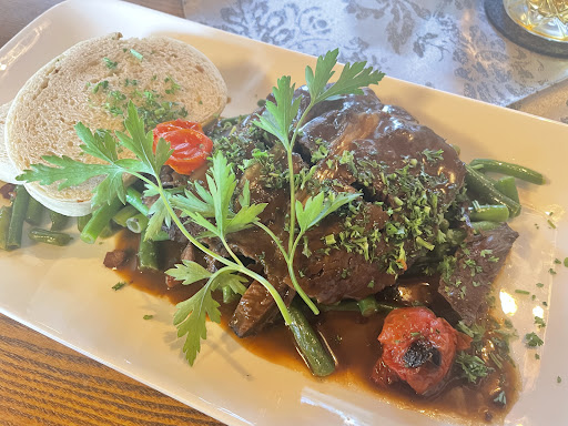 Heute habe ich gemeinsam mit drei Freunden ein Abendessen genossen. Als Vorspeise wählten wir Würzfleisch, während die Hauptgerichte aus Roulade, Sauerbraten, Gulasch und Steak au four bestanden. Die Portionsgrößen waren angemessen und dem Preis entsprechend fair. Leider gab es während unseres Besuchs einige Unstimmigkeiten, die den Gesamteindruck trübten.
