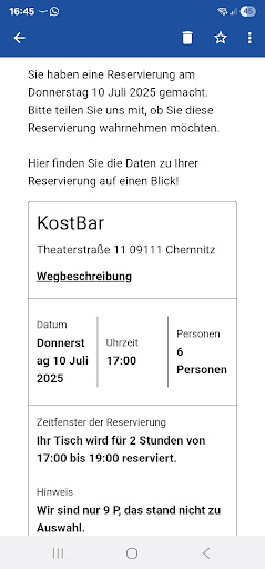 Read moreUnser Besuch in der Kostbar in Chemnitz war ein rundum fantastisches Erlebnis. Von dem Moment an, als wir das Lokal betraten, wurden wir mit offenen Armen empfangen. Die Gastfreundschaft war herzlich und einladend, was sich sofort in der sorgfältigen Platzierung an einem großzügigen Sechsertisch für uns zwei widerspiegelte - ein wahrhaft luxuriöses Gefühl von Raum und Komfort.