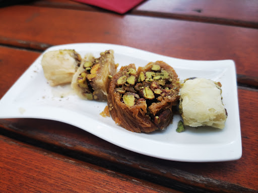 Die Speisen waren ein Gedicht! Wir haben uns für eine Kombination aus Vorspeise, Hauptspeise und Dessert entschieden, um die Vielfalt der syrischen Küche kennenzulernen. Besonders zu empfehlen sind der Malula-Teller und der Vegetarische Teller, da sie eine gute Auswahl an verschiedenen Spezialitäten bieten. Die Gerichte waren allesamt sehr geschmackvoll und verzauberten unseren Gaumen mit interessanten Gewürzen.