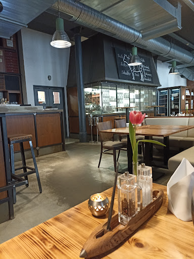 Hier passt Garnichts zusammen. Der Versuch, gehobene Gastronomie anzubieten kann als auf ganzer Linie gescheitert angesehen werden. Das fängt beim Umfeld der Location an. Ein Parkplatz im Hinterhof neben Baustellen, mit riesigen Pfützen und einem DDR-Kopfsteinpflaster. Frauen mit High Heels werden da schon die Nase voll haben. Als nächstes keinerlei Ausschilderung, wo sich das Restaurant im Gebäudekomplex befinden soll. Also auf und die alten Werkhallen durchsucht, was bei der Größe des Objekts die nächste nervige Herausforderung ist. Bei Verlassen haben wir dann sogar noch ein Leuchtschild über einem Eingang gefunden. In ca. 5 Meter Höhe und natürlich nicht beleuchtet verschmolz es im Dunklen sehr gut mit der Struktur des Mauerwerk.