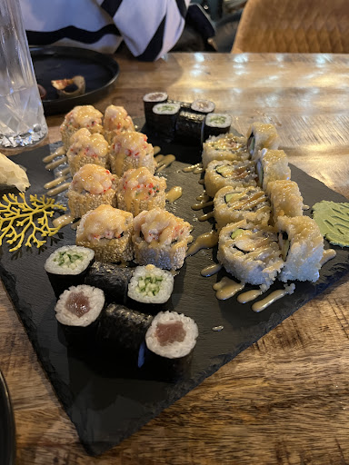 Die Atmosphäre im Restaurant war ebenfalls bemerkenswert. Die Einrichtung war modern und elegant, und die Musik im Hintergrund trug dazu bei, eine entspannte Stimmung zu schaffen. Die Kombination aus gedämpftem Licht und stilvollem Interieur schuf eine angenehme Umgebung, die perfekt zum Genießen der Speisen geeignet war.