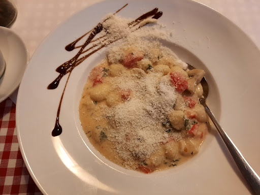 Read moreWas soll ich schreiben? Dass das Essen ausgezeichnet war, der Service über alle Maßen freundliche und schnell, die Getränke immer schnell auf dem Tisch standen? Ich wünschte, dieses Italienische Restaurant unter Deutscher Führung mit italienischen Köchen hätte eine ihm angemessene Räumlichkeit. Das Lokal ist eher winzig, nur wenige Tische sind vorhanden. Wir hatten Glück mit dem Wetter und konnten draußen Dinieren. Zu diesem Zweck trug die Chefin mit dem Personal alles eingedekct nach Draußen vor das Lokal. Doch leider auf unebenem Untergrund. Das Gefälle der Staße sorgt auf die Dauer für einen verspannten Rücken. Doch entscheidend ist Letzenendes wie es schmeckt. Und da lässt sich nur sagen: einwandfrei. Preis-/Leistungsverhältnis gut bis sehr gut, soweit ich das beurteilen kann, da ich eingeladen war. Ein Tipp für alle, wenn man mal in der Gegend ist oder tatsächlich etwas erfrischend Neues ausprobieren will. Für mich so ein kleiner Geheimtipp. Fazit: Sehr gut zu empfehlen. Die Pizzenauswahl ist übrigens gigantisch und alle Pizzen werden im Steinofen auf Stein gebacken! Portionen für jedermann zum sattwerden und...