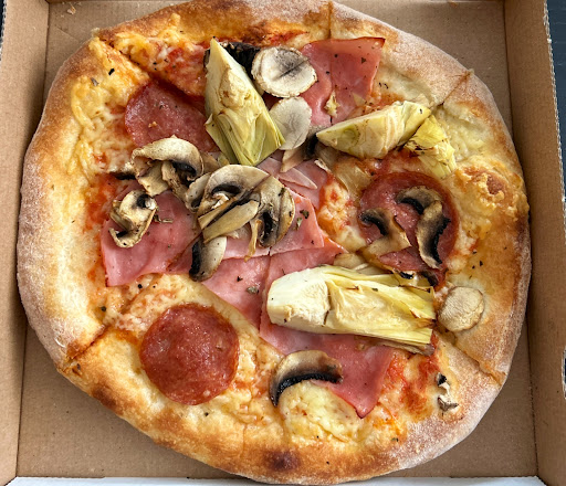 Read moreBei dieser Pizzeria handelt es sich um eine Stehpizzeria bzw. Abholpizzeria. Das Ambiente entspricht einem Imbiss oder einer Kantine, was aber so gewollt ist denke ich. Der Teig wird selbst gefertigt und die Pizzen per Hand geknetet und belegt. Alle Pizzen, die wir bis jetzt dort geholt und gegessen haben waren mega lecker, der Boden knusprig und mit ausreichend Belag belegt. Das Preis/Leistungsverhältnis zum Geschmack ist so gut, dass Wir durch die halbe Stadt fahren, um uns dort die Pizza zu holen. Einziger fader Beigeschmack ist die sehr ruppige und unfreundliche weibliche Bedienung. Dort eine etwas freundlichere und Kundenorientierte Servicekraft eingestellt, sofort gibt es 5 Sterne...