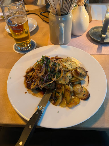 Lovely restaurant owned by Paulaner brewery, great decor, surroundings and atmosphere. The staff and service were excellent. We had fish soup (local pike) & beef soup to start - very nice, followed by schnitzel (in pretzel crumbs) & a traditional pork and dumplings dish. Both were excellent. There's a huge event room for music or hire events/ festivals and plenty of outdoor space. Highly recommended.