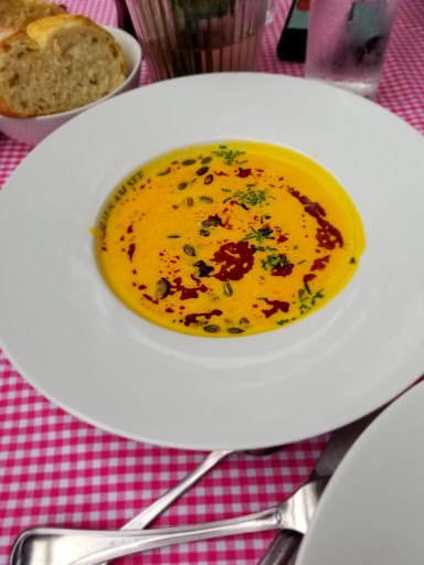 We decided to have dinner here after spending the day at the lake. The presentation of the dishes was really well done and it raised my expectations of the food, only to find out that the food was not that great tasting. We ordered the pumpkin soup, chili con carne, pad Thai, blut und leberwuste, gnocchi gorgonzola. The pumpkin soup had a strong herbs flavor. I asked the waitress if I could exchange it and I think this was the first time she was asked this because she had to check with the cook. She came back and said our food taste was different and that I could order something else but it would not be on the house. I understand that pumpkin soup may be different (in Germany) than I'm used to, but I did not order a herbs flavor soup. Sadly the other dishes were either too salty or too bland. The best tasting thing was the bottled coke and the beautiful view of the sunset, which was after all,...