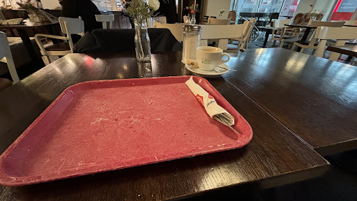 Read moreZuviel Preis zu wenig Leistung... Geschmacklich in Ordnung, aber ich möchte gerne einen Kakao wenn ich ihn bestelle und keinen Kaffee. Insgesamt eine to go Atmosphäre auch im Sitzbereich, es fehlt ein entspannter Caféhaus Flair. Etiketten auf den Tischen aufgeklebt weisen auf das abholen der Speise an der Theke hin. Diese sind aber sehr abgenutzt und verunstalten das Gesamtbild. Verkäuferinnen abgelenkt, reden parallel miteinander, sodass die Kundenbedienung eher salopp ist. Eine andere Verkäuferin hat mit einem anderen Kunden gescherzt, es geht wohl z.T. auch...