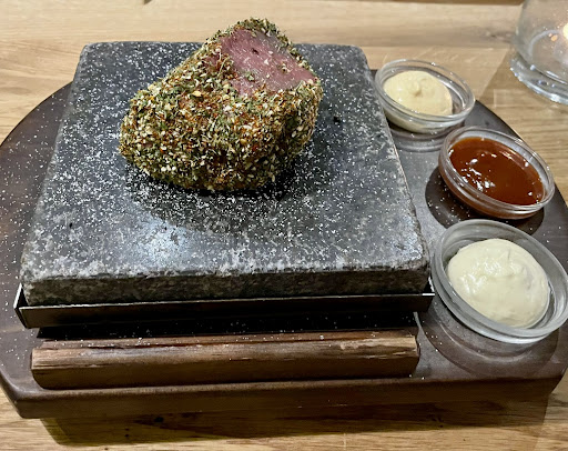 Signature Dish is a piece of hot stone alongside your raw steak brought to your table what makes you your own grill master 🥩