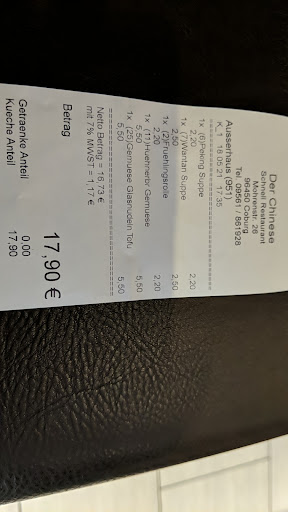 Read moreSehr günstige Lage in Coburg und eine umfangreiche Speisekarte. Räumlichkeiten zwar klein aber gemütlich und sehr sauber/aufgeräumt (das Aquarium fehlt). Toiletten sauber und neu. Personal meist engagiert und die Auslieferung der Bestellungen erfolgt sehr schnell. Die Qualität ist gut (hier Ente und Suppe süß/sauer/scharf). Die Dimensionierung der Portionen ist sehr gut. Bedauerlich ist, dass das Sambal Oelek (nur ein kleines bisschen) bei Mitnahme von Speisen extra kostet (und das dann sehr teuer ist). Auch ist die Bedienung manchmal etwas unaufmerksam und man bekommt keinen Pflaumenwein gereicht. Das war früher alles noch besser. Da sollte die Geschäftsleitung...