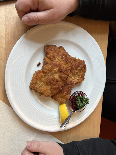Man zahlt 20€ aufwärts für ein Gericht. Mein Gericht bestand aus zwei kleine Schnitzelchen die zu lange in altem Fett gebraten wurden und eine Schale Pommes die sich zwei Gäste untereinander aufteilen können.