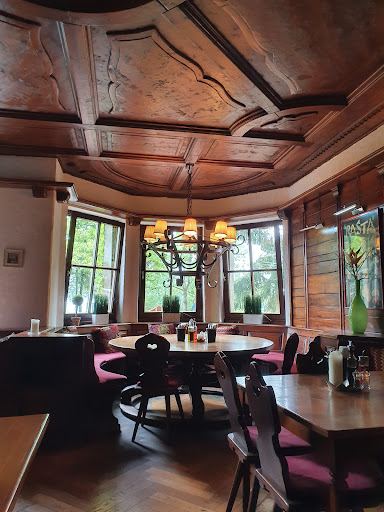 Sehr positiv zu erwähnen, sind die vielen Parkplätze am Haus, die nette Lage, dass auch Fellnasen willkommen sind und der im Sommer vermutlich sehr angenehme Biergarten im Schatten mächtiger Bäume. Aber deshalb kommen wir ehrlich gesagt...