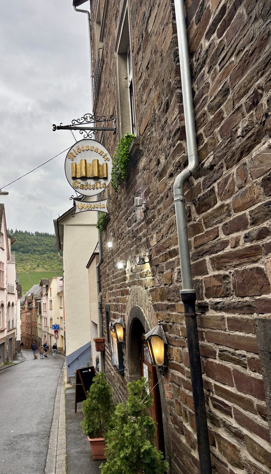 I ate here two times during our vacation in cochem. The first night, I had spaghetti bolognese, and my friend had pizza fungi . Before our food, we got two pieces of bread as a starter, like every table. The pasta was good. The pizza was floppy, and everything fell off it. She didn't enjoy it. Felt like it wasn't fully cooked yet. service the first night was good. most of them spoke english and even dutch. we sat upstairs on the terrace.