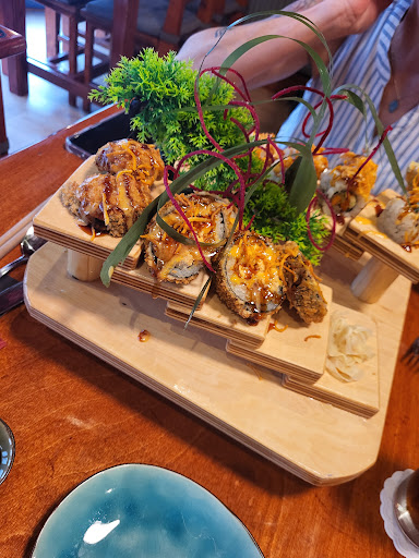Hauptspeise: Sushi Bowl. Es stand auf der Karte nichts von einer Soße dabei, aber es war Soße drauf und leider war der ganze Reis in Soße getränkt.