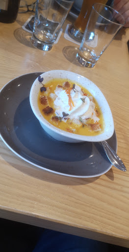 Read moreFür mich eine klare Empfehlung! Zunächst einmal zur Lage: Der Moselgasthof liegt im wunderschönen kleinen Mesenich, einem Winzerdorf mit sehr gutem Wein an der Mosel, direkt an der Hauptstraße mit ausreichend kostenlosen Parkplätzen, dementsprechend auch gut per Auto erreichbar. Das Restaurant ist sehr modern und ansprechend gestaltet, Hirsch-Motive an Stuhl und Sitzbank verzieren die feinen Speisesäle und lassen den schicken Wild-Flair erst richtig zur Geltung kommen. Das Personal war freundlich und flink, besser geht es kaum. Nun zu den Speisen. Wir hatten zunächst eine Karotten-Ingwer-Suppe bestellt. Diese war schön sahnig und perfekt gewürzt. Den Ingwer hatte man auch schön herausgeschmeckt! Als nächstes der Hauptgang, die Jäger-Häppchen. Auf so eine coole Idee muss man erst mal kommen! Ein leckeres, saftiges Rösti, dazwischen feinstes erlesenstes Wildfilet, anschließend eine Birne oben drauf und der überbackene Käse machte den Happen perfekt. Dazu gab es eine Salatgarnitur mit einer unverkennbaren Balsamico-Variation. Zum Nachtisch erfreute ich mich an einer schönen Portion Crème Brulée mit einer schmackhaften Kugel Vanilleeis und einer kleinen aber feinen Beerenauswahl. Gut gesättigt ging ich nach Hause und schreibe diese lange, aber vollkommen notwendige Rezension, da dies einfach mal gesagt werden musste. Ich komme auf jeden Fall wieder! Ein epischer...