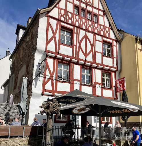 This is one of our go to spots on the Mosel. The menu is a little more unique than others in the surrounding. The food is really good quality. We've had just about everything on the menu and it's all great. My favorite is the salad with shrimp wrapped in crispy potatoes. The boys love the burgers, desserts and the way they serve the ice tea, with ice! We also really enjoy the wine they serve. The staff is always, always super friendly. Refreshing for the area. The views from outside are fantastic and it's on the sunny side of the Mosel! Ya don't need a reservation, but I'd get one if it's high season on the weekend. Ediger can get pretty busy on the weekend, but there is a lot of FREE parking in the area. It might be ok for wheel chairs if you sit out front at one of the few...