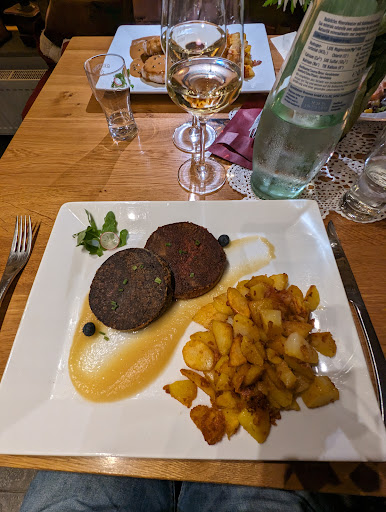 Total schön eingerichtet und nettes Personal. Das Essen lies nichts zu wünschen übrig. Wir hatten den Camenbert zur Vorspeise und als Hauptgang dann das Rumpsteak (super gemacht, schöne Portion) mit Bratkartoffeln und Bohnen im Speckmantel, und meine Frau hatte einen Salat (große Portion mit ordentlicher Menge Rindersteakstreifen und Bratkartoffeln).