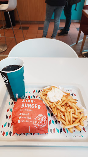 Typisches Schnellrestaurant, allerdings unterscheidet sich hier die Bedienung grundlegend von der der anderen beiden Großen: Höflich, zuvorkommend, nicht gestresst, obwohl die Bude voll ist, zwar etwas aufgesetzt, aber ok. Die Pommes sind leider zu stark gewürzt, dazu zu dünn und waren zu lange in der Fritteuse. Der Hamburger besteht aus einem Brötchen, einer Scheibe Fleisch, einer Scheibe Gurke und etwas Ketchup. Das Brötchen ist gehobener Standard, das Fleisch schmeckt sehr gut, ebenso wie die Sauce. Etwas mehr Beilage auf dem Burger wäre also ein Traum. Die Chickennuggets sehen zwar arg maschinell aus, schmecken aber ausgezeichnet, volle Punktzahl! Auch die Hähnchen sind empfehlenswert. Die Getränke sind leider auch Standard, aber immerhin mal etwas anderes als Coca Cola und Fanta. Dazu wird standardmäßig kein Eis hinzugefügt, erstes Schnellrestaurant, das ich besucht habe, in dem das gemacht wird, vielen Dank! Nicht so gut: Es sollte mehr auf die Umwelt geachtet werden. Die Preise sind in meinen Augen etwas hoch, aber das sind ja alle Fastfood Restaurants. Ich lande bei 3 bis 4 Sternen, in der Hoffnung, dass sich etwas ändert, wähle ich 3 Sterne, kommen auf jeden...
