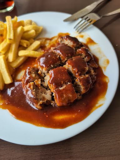 Da es hier bisher meist Bilder von Pommes gezeigt werden, habe ich mir gedacht mal eine Rezension zu schreiben und eine hausgemachte Frikadelle / Boulette zu zeigen. In meinem Fall mit sehr gutem Curryketchup.
