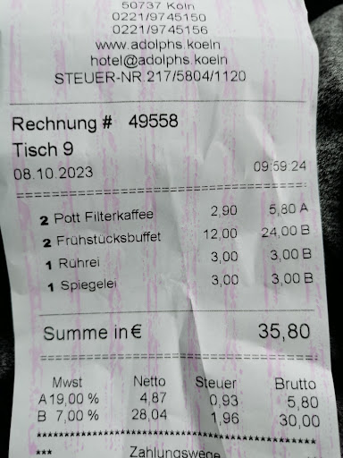 Guten Tag, leider kann ich nur einen Stern vergeben. Ich hätte gerne mehr gegeben, aber unter den Umständen ist dies leider nicht möglich. Früher waren meine Familie und ich oft in der Filiale in Weidenpesch zum frühstücken. Immer alles Tipi topi. Leider ist es dort nicht mehr möglich, sodass das wir auf die Filiale in Longerich ausgewichen sind. Reservierung online kein Problem, klappte super. Und das war es dann auch. Beim betreten des Restaurants/Gasthaus keine freundliche Begrüßung, kein "ich zeig euch euren Tisch". Wir suchten also unseren reservierten Tisch selbst. Wir nahmen Platz und warteten und warteten und warteten. Wir hätten gerne Kaffee bestellt, aber leider kam niemand zu unseren Tisch. Auch nach eindringlichen mit finsterer Miene gucken kam niemand. Ich musste aufstehen der Dame hinterher laufen und sagen das wir gerne Kaffee bestellen möchten. Da kam nur ein unfreundliches " ja welchen den genau". Ich bat sie zu unserem Tisch, ich war ja schließlich nicht die einzige die etwas wollte. Irgendwann kam dann jemand. Und das war auch das einzige mal das jemand ohne Aufforderung zum Tisch kam. Es fragte niemand zwischendurch ob alles ok ist oder ob man noch etwas dazu bestellen möchte. Ganz schlechter Service. Liebes Adolph-Team, macht euch mal Gedanken darüber ob es das richtige Personal ist! Und die Ausrede das es vielleicht zu voll gewesen ist, zieht hier nicht. Es waren zu dem Zeitpunkt unseres Eintreffens gerade mal 2 Tische mit je 2 Personen besetzt. Eins weiß ich gewiss, ich komme nicht wieder. Ich habe mich, wie meine Begleitungen sehr unwohl und nicht erwünscht gefühlt. Trotzdem, alles gute für...