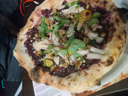 Read moreEchte napoletanische Pizza zu einem fairen Preis. Hätte ich mich für die richtige Pizza entschieden, fürs Essen 5 Sterne. Meine Pizza (a Pizza reale, mit Schinken, Pilzen und scharfem Honig) war jedoch so abartig scharf, dass es einem einfach alles im Mund verbrannt hat. Man hat außer Schärfe nichts mehr geschmeckt. Ich esse gerne etwas schärfer, aber diese Pizza war so unfassbar scharf - wirklich ungenießbar. Trotz dass ich riesen Hunger hatte, blieb bei mir über die Hälfte liegen da ich schlicht nicht mehr konnte. Hier sollte man entweder in der Karte ergänzen, dass diese wirklich wirklich scharf ist, oder zumindest seitens der Kellner mal einen Hinweis geben. Scharfer Honig? Ja dachte ich, ein paar Tropfen Honig mit leichter Schärfe - nix da, Fehlanzeige! Und weiter war es mir auch viel zu viel Honig auf der Pizza, aber das ist sicherlich Geschmackssache. Service war leider nicht so berauschend, wenn auch stets höflich und sympathisch. Nach Getränkebestellung warteten wir über 20 Minuten, um uns dann vom Kellner sagen zu lassen, dass Spritzgetränke aus sind, da es kein Eis mehr gibt. Nach Umbestellung auf Wein mussten wir wieder 20 Minuten warten. Für 32€ für die Flasche Lugana gab es dann auch keinen Weinkühler, da es ja kein Eis mehr gab (bei gefühlten 35 grad im Restaurant). Mein bestelltes Bier kam überhaupt nicht, war mir dann auch zu doof es nachzubestellen. Kartenzahlung klappte dann am Ende auch nicht mehr, es wurde nur eine Summe genannt, nachrechnen hätte man selbst gemusst. Preis war am Ende jedoch ok, da das Essen theoretisch doch ein ganz gutes Preis Leistungsverhältnis hat. Vielleicht ein Einzelfall, aber hier ist definitiv Verbesserungspotenzial. Sorry für die nicht allzu...