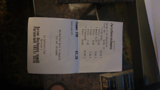 Oregano Kartoffeln als TK Wäre, mit getrockneten Oregano bestreut. wer schonmal eine Löffel gefriergetrocknete Kräuter im Mund hatte, versteht mich. auf den freundlichen Hinweis, das man in einem Restaurant ,welches einen gewissen Anspruch erhebt, nicht erwartet, würde pampig und unfreundlich reagiert. Man würde ja, Zitat:"160 Leute abfüttern" und könne da keine frischen Sachen liefern, ausserdem bekäme ich ja in jeder Frittenbude TK- Ware. also wären wir in einer Frittenbude mit Stoffservietten? Die Frage nach der Digestivkarte würde verneint, man hat einen Wagen mit einer Auswahl, soweit so gut! Eine Preisauszeichnungspflicht scheint es für dieses Lokal nicht zu geben, so erscheint der Metaxa, zugegebenermaßen ein Privat Reserve, den man für ca 55€ im Einzelhandel erwerben kann, 20€/2cl. Da haben wir also bei 3 Digestivs die Flasche bezahlt und die anderen 32 Metaxa gehen in die Marge. so hat man zu dritt 224,90€ auf der Rechnung. Diese wird diskret in einer Schatulle gereicht und kurz danach wieder abgeholt. Als ich mach gefühlten 10 Minuten anmerkte, das ich wenigstens den Bewirtungsbeleg zurück haben wollte, wenn ich schon kein Wechselgeld zurück bekäme, Krieg ich den offensichtlich aus dem Müll gefischten Beleg zurück mit der Begründung man sei davon ausgegangen, das der Überschuss Trinkgeld sei... Nie wieder? achja, da Aphrodite mit Kritik nicht umgehen kann und sämtliche Negativkommentare sofort löscht, wird dieser nun in allen...