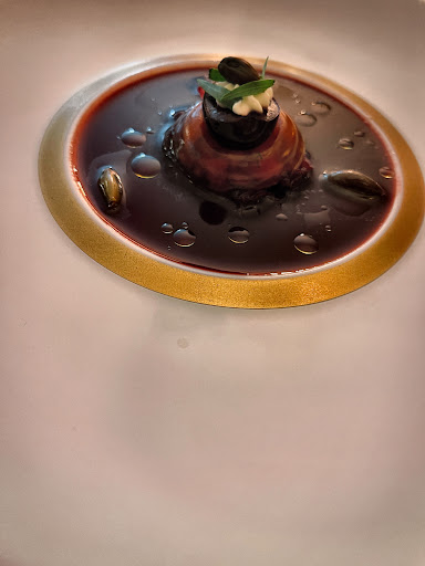 Der Höhepunkt des Abends war das Kagoshima Rind A5 – ein wahres Prachtstück. Es war wunderbar zart und jede Faser schien mit dem geschmorten jungen Lauch und der Trüffel Jus zu tanzen. Ein Gericht, das bewies, wie Fleisch von höchster Qualität die Hauptrolle in einem Gourmet-Essen spielen kann.