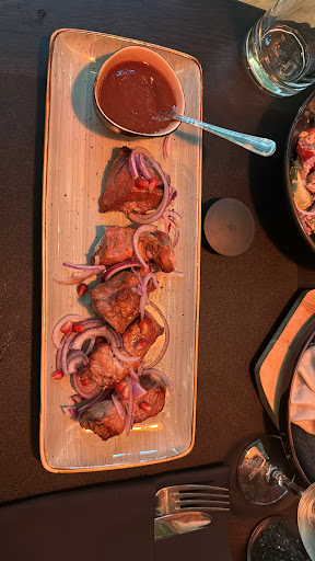 Read moreВ заведение мы пришли втроем и заказали: два шашлыка (Mtsvadi mit Schweinfleisch), хачапури (Acharuli Khachapuri), два хлебца с фетой (Mchadi), две жареные картошки (Bratkartoffeln), хинкали (Khinkali), аджика, две воды, два пива. Счет вышел на 122€. Заведение работает на немцев. Меню не предложили на русском языке, а также девушка встретившая нас сделала вид, что не понимает по русски или же действительно его не знает. Интерьер уютный, симпатичный и это один из немногих плюсов. Помещение узкое и длинное и нам пришлось присесть вначале где недалеко была входная дверь, которая то и дело открывалась сотрудниками и создавала сквозняк и дверь на кухню, куда беспрерывно что-то заносили/выносили, например половую тряпку с ведром, грязные полотенца, грязный поддон для кофейной машины и сотрудники выносящие себе десерты. Таким образом эта зона выглядит скорее зоной ожидания, но то что нам в конечном итоге так и не предложили пересесть - не главный минус этого заведения. Наш заказ принимала девушка афроамериканка, которая услышав удивление о том, что тархун стоит 6.70€ сообщила, что она понимает русский язык😁 Хоть в Германии это неудивительно, хочется все же упомянуть, что по этикету меню подают сперва дамам, а затем мужчинам. В этом заведении, к сожалению, все наоборот, как и почти везде в Германии. Свой заказ мы ждали примерно 40 минут. Удивительно что грузинское заведение, да и еще и позиционирущее себя как относительно элитный ресторан непросто долго готовит, но и не сочли нужным поставить на стол закуски, дабы сократить время ожидания, но это было только начало, ведь первыми блюдами на столе появились одновременно две мини лепёшки с «фетой», хачапури и хинкали, при этом хачапури и хинкали были заказаны одним человеком. Другими словами один гость должен был одновременно есть хачапури и хинкали, в то время как другие два гостя, можно сказать, не получили ничего. Что из себя представляет лепешка с фетой (Mchadi) за 6.90€ - это твердая масса со вкусом манки диаметром примерно 8-10 см и высотой 1 см с дырочкой посередине😁 На вопрос официантке где же фета, официантка пыталась убедить, что она внутри, но спустя примерно час после того, как эти твердые, почти безвкусные лепешки пролежали на столе, вдруг официантка принесла три кусочка феты🤦🏻♀️ Следующим блюдом появившимся на столе была глубокая тарелка с жареной картошкой. Она простояла примерно минут 10, после чего были принесены два шашлыка, каждый с картофелем фри, о чем в меню не было упомянуто. А вот упомянутого в меню шампура, как раз и не было, как и ткемали. Вместо ткемали был какой-то другой зеленый соус😁 Мы были удивлены тем, что тарелка с жареным картофелем только одна и при этом ее поставили на край стола, где как раз никто не сидел😅 На вопрос это одна или две порции картофеля в одной тарелке, нам было сказано, что это одна порция, потому что мы одну и заказали. На самом же деле заказывали мы картофель, как гарнир к шашлыкам и соответственно две порции. Официантка, также как и с фетой, стала спорить и убеждать, что мы заказали одну порцию. Однако предложила доделать еще одну порцию. На вопрос прийдется ли снова долго ждать уверила, что в этот раз еда прийдет быстро, поэтому она пришла через полчаса😅 Хачапури большой и вкусный. В хинкали толстое безвкусное с неприятным запахом тесто, и мясо с бульоном, можно скащать, совершенно без спец