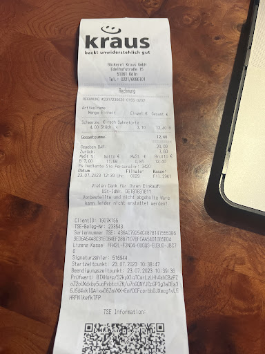 Read moreWar heute im Laden in Flittard und habe 4 Stücke Schwarzwälder Kirschtochte gekauft. Ausgezeichnet war der Kuchen mit 2,45 Euro pro Stück, aber an der Kasse wurde plötzlich 3.10 Euro pro Stück verlangt. Auf meine Rückfrage wurde mir geantwortet, dass 2,45 der Preis von gestern war aber keiner konnte mir erklären warum am Sonntag der Kuchen 0.65 C. pro Stück teurer wurde ? Hinzu kommt das die Stücke extrem klein sind mit 112 Gramm pro Stück. Als Kunde kann ich nur sagen dass dieses Geschäftsgebaren höchst unseriös ist und das ich dort nicht mehr kaufe, denn die Stücke werden kleiner und die Preise größer, man nennt das auch Abzocke. Mit freundlichen...