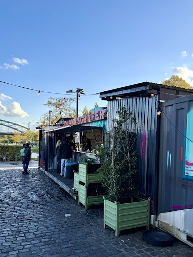 Read moreWas gibt es Gutes zu schreiben???: Die Lage und Aussicht am Rhein sind schon ansprechend. Ach und die gekühlte Fritz Apfelschorle war köstlich. Und damit hat es sich auch. Für eine sehr übersichtliche Portion Currywurst mit Pommes inkl. einem Klacks Mayo und Ketchup (jeweils 50 Cent) stolze 8 Euro einzufordern bedarf schon einem ordentlichen Schuß Selbstvertrauen! Um es klar zu formulieren: Wenn die Qualität dem auch entspricht, bin ich gerne bereit, dies auch zu bezahlen. Was dort aber in der Pappschachtel auf einen wartet, ist eine Beleidigung für jede gute Wurstbude! Nach einer ausgedehnten Wartepause, bei wenig Betrieb, wurde das Essen ausgerufen und man durfte mit freudiger Erwartung seine Speisen am Tresen abholen. Und dann nahm die Enttäuschung ihren Lauf. Die Pommes waren nur noch lauwarm. Was aber im Zusammenspiel mit der extrem ungleich geschnittenen Bratwurst nicht weiter auffiel. Die hatte eine vergleichbare Temperatur! Die sogenannte Currysauce war mit einer undefinierbaren Gemüseeinlage gestreckt und passte überhaupt nicht zudem, was man gemeinhin unter einer guten und schmackhaften Currysauce versteht. Es kann aber auch sein, daß der Koch einfach vergessen hat, nochmal auf den Mixer zu drücken...