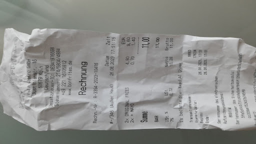 Read moreIch kann die Rezension meines Vorredners "v s" zu 100% bestätigen, denn ich habe genau die gleiche Erfahrung vergangenen Freitag gemacht. Auch meine Pommes waren extrem trocken, die Currysauce total flüssig und viel zu wenig und auch ich habe dem Personal Feedback hierzu gegeben. Auf meine Rückmeldung erhielt ich die unfreundliche Antwort "Tja, Geschmäcker sind halt verschieden". Abgesehen davon, dass diese Rückmeldung unmöglich ist, kann ich mir nicht vorstellen, dass irgendjemandem diese Pommes geschmeckt hätten. Bei einem stolzen Preis von 5,90 für eine normale Pommes mit Currysauce, erwarte ich eine wesentlich bessere Qualität. Dieser Laden hat es absolut nicht verdient sich "Bon Frites" zu schimpfen. Geht lieber gegenüber zum Döner-Laden, dort sind die Pommes günstiger und...