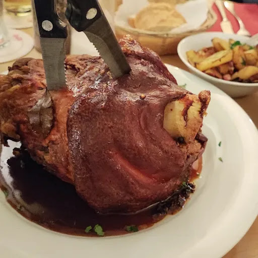 Nosotros pedimos el codillo al horno y, sinceramente, fue la comida más barata que hicimos en todo el viaje. El plato en cuestión pesa algo más de 1.2 kilos y cuesta 18 euros. Es tan grande que prácticamente no pudimos acabarlo.