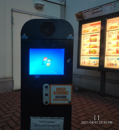Während wir auf das Essen gewartet haben stand ein älterer Mann vor der in meinen Augen überforderter Bedienung, 2 Bestellungen auf dem Bildschirm zu sehen, und wollte ein Burger und ne Pommes bestellen. Antwort :"Sie müssen am Bildschirm bestellen!" Der Herr :"Das schaffe ich nicht dafür bin ich zu alt." Er wartete auf ne Reaktion von der Angestellten Dame die nur mit den Achseln zuckte und sich wieder intensiv mit Ihrem Bildschirm beschäftigt, jetzt nur noch unsere Bestellung zu bearbeiten. Der Herr verlässt den Laden hungrig.