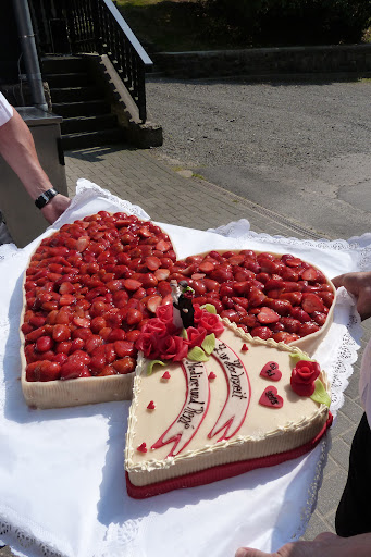 Read moreDiese Bewertung kommt zwar etwas spät, aber besser spät als nie. Wir haben hier damals für unsere Hochzeit Anfang Juli 2015 unsere Hochzeitstorte anfertigen lassen. Der Konditor persönlich nahm sich viel Zeit und hat alles nach unseren Vorstellungen und Wünschen aufgeschrieben, die Torte wurde zudem direkt an unsere Location geliefert. Als die Torte dann am Hochzeitstag herausgetragen wurde freuten wir uns unendlich. Sie war genau so geworden, wie wir sie uns immer vorgestellt hatten und der Geschmack war einfach ein Traum. Alle unsere Gäste waren von der Torte begeistert, viele meinten, sie hätten bisher keine Hochzeitstorten erlebt, die so toll geschmeckt haben. Entschieden hatten wir uns für ein riesen Doppelherz. Das mit frischen, deutschen Erdbeeren belegte Herz hatte eine Erbeerbuttercreme, während das mit Marzipan überzogene Herz eine Schokoladenbuttercreme hatte. Ein kleiner Fauxpas ist dem Konditor dann doch passiert und es stand statt 03.07. der 03.06. drauf, was jedoch nicht wirklich auffiel und für einen Gag zur Hochzeit gesorgt hat, uns jedenfalls hatte das nicht gestört. ;) Noch heute schwärmen wir von unserer Hochzeitstorte und schauen gerne mal im Café vorbei, um uns die, unserer Meinung nach, leckersten Tortenstücke in ganz...