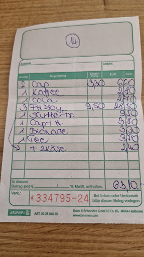 Habe mir das "Sürther Frühstück" bestellt. Dies besteht aus einem Brotkorb und unzureichendem Aufstrich. Bevor man eine Scheibe Käse oder Wurst für jeweils ein ganzes Brötchen benutzt und damit den Rest des Korbs staubtrocken verzehren muss, fragt man freundlich nach 2 weiteren Scheiben Käse. Bin davon ausgegangen, dass man sich kulant verhält und mir die 2 zusätzlichen (kleinen) Scheiben kostenlos oder gegen eine symbolische Summe serviert. Unten aufgeführt wird schnell deutlich, dass die dünnen und kleinen Käsescheiben in diesem Cafe aus zusammengeschmolzenen Rohdiamanten und den Überresten des Bersteinzimmers bestehen müssen. Wer 2,40€ für 2 mickrige und labbrige Scheiben Aldi-Käse verlangt, sollte sich in eine der vielen Ecken des Cafes stellen und sich gründlich schämen. Und schon wandern 7 Kunden um die Ecke. Dort ist es auch sehr schön und es wird sich nicht hinter dem Tresen ins...