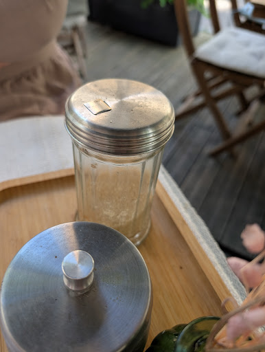 Mein Glas Strohhalm war oben abgesplittert und als ich nach einem neuen gefragt habe, war der andere ebenfalls kaputt. Die Iced Matcha Latte Gläser an unserem Tisch waren auch eher blass und mehr Schaum als Getränk.
