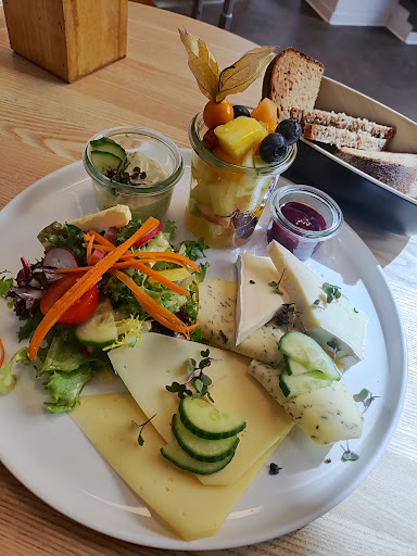 A small Cafe that is nicely decorated and has a nice feel to it! The ladies serving were really warm, welcoming and attentive. My partner and I had the special winter drinks which were a chocolate and roasted peanut latte macchiato and an almond latte macchiato. The chocolate peanut drink was enjoyed by us both. The almond macchiato was very much almond flavoured (it does have almond syrup in it and this is stated on the menu), for us, maybe a little too much almond flavouring so next time would probably pick a regular coffee like a cappuccino or regular latte instead. I had one of the breakfast plates with different cheeses, bread, salad and a fruit salad. The cheese and fruit salad were lovely and fresh. In my opinion, it was a big meal for a breakfast meal but still tasted good. My partner had the chocolate porridge with a side of red beetroot sesame cream and bread. We probably wouldn't have the porridge again but definitely will try other things on the menu if we find ourselves in Cologne...