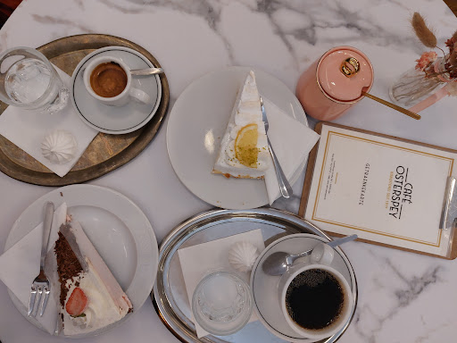 Read moreEin kleines Schmuckstück. Das Café ist gleichermaßen von modernen nd altmodischen Nuancen gekennzeichnet. Die Einrichtung ist wunderschön und mutet an in einem Wiener Cafézu sitzen. Der Eingangsbereich sieht noch wie eine klassische Konditorei aus. Leider war der Service schlecht. Die Kellnerin hat mein Getränk falsch weitergegeben, was ich direkt korrigierte. Man hat hier beim Bedienen weder Gastfreundschat noch Freundlichkeit erfahren. Die Teller wurden kommentarlos abgeräumt. Der Zitronen-Baiser-Kuchen war grandios🤩 Die Eissplittertorte war eine reine Enttäuschung. Wir haben auf Empfehlung die mit Erdbebe genommen. Ich kenne diese Torte mit Schokolade und Baiser. Davon fehlte beides, obwohl die Konditorei so tolles Baiser hergestellt, was wir zu (leckerem Schamong) Kaffee bekommen haben. Im Geschmack spürte man leider "alte Tiefkühle"... ein Hinweis darauf, dass die Torte etwas länger antauen muss, bevor sie besser schmeckt, wäre hilfreich gewesen. Da die Kellnerin eh keine Lust auf uns hatte, konnte ich meine Kritil auch nicht...