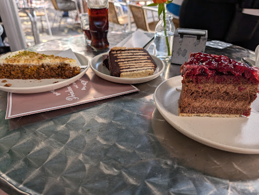 Pâtisserie exceptionnelle, les gâteaux et biscuits y sont d'une qualité incomparable. Pas trop de sucre, beaucoup de goût et de saveurs raffinées, et surtout, il y a beaucoup de choix et des textures très différentes (je conseille de prendre plusieurs types de gâteaux et de les partager pour décupler le plaisir !). En plus, les serveuses sont super gentilles et souriantes et la terrasse très agréable dans la rue piétonne, surtout quand il y a un petit rayon de soleil. Il y a aussi une belle salle à l'intérieur. Le tarte de cake à la citrouille est sublime (ressemble un peu au cake aux carottes mais encore plus humide et moelleux, et même le glaçage est très peu sucré), l'apfelstrudel est divin (même servi froid) et servi avec une chantilly non sucrée (c'est rafraîchissant et bien meilleur ainsi !), le gâteau au chocolat et fruits rouges est TRES léger et mousseux comme un petit nuage,.. On a tout aimé ! Nous sommes venus 2x en 2 jours tellement c'était bon, et nous reviendrons assurément lors de nos prochaines visites à Cologne. On a goûté des gâteaux ailleurs, mais ceux-ci étaient nettement meilleurs (et le prix très raisonnable pour des quantités bien généreuses). C'est une très bonne surprise: cette pâtisserie est de qualité supérieure et on ne peut pas du tout la comparer aux nombreuses chaines de pâtisseries qui se sont multipliées partout dans la ville. J'ai eu beaucoup de chance de trouver cette adresse par hasard. Cette maison traditionnelle a beaucoup de talent et de savoir faire. C'est mon coup de foudre sucré à...