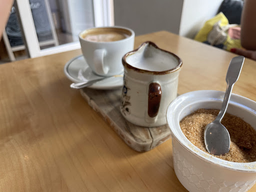 The only cafe in Bayenthal that doesn’t feel old-fashioned and quaint. Even though the food isn’t the what i typically would want, it’s the only friendly place In this quarter/veedel that you can chill and have a coffee in a contemporary setting. Every other cafe/restaurant in Bayenthal feels more suitable for grandparents. (Sorry but it’s true). That’s why I’m giving it 5 stars rather than the 4 i might have given it. The food and drinks are primarily vegan. Though drinks are available with regular cow milk as well. I had a vegan croissant that was surprisingly tasty and the coffee was nice and hot, served with hot steamed milk on the side. My friend had a banana bread and a vanilla matcha latte (hot, as they ran out of ice) - i think i only like matcha milk combo as a cold option. The banana bread was too sweet for me. If I’m in this area, I’ll go back to the cafe. It’s the only...