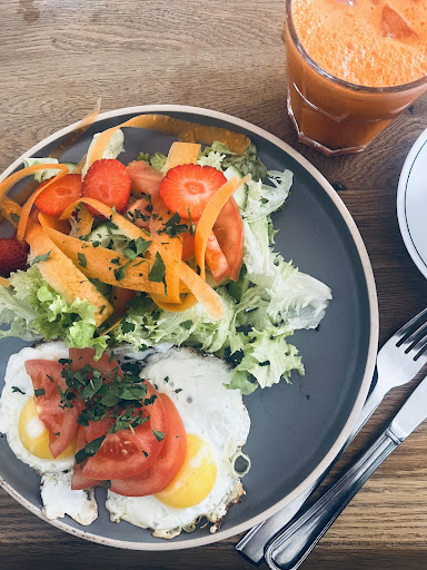 “I visited with high expectations based on the lovely ambiance and friendly staff. I ordered a carrot-lime-orange juice (€5.90), which was served promptly in about 5 minutes—great start! However, the main course, toasted bread with fried egg, salmon, and salad, took a full 40 minutes to arrive, which felt excessively long, especially as other patrons who arrived after me were served sooner.
